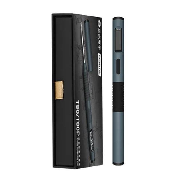 Еще одна недорогая модель от бренда ALIENTEK с более продуманной эргономикой использования и более компактная по размерам. Тонкие сменные жала обеспечивают быстрый разогрев и поддержание температуры до 450 градусов включительно и в течение длительного времени. Мощность можно регулировать в пределах от 18 до 100 Вт. Отмечу, что ALIENTEK предлагает брендированные подставки со встроенным PD-источником питания на 100 Вт, таким образом формируя настоящую паяльную станцию для стационарного применения.