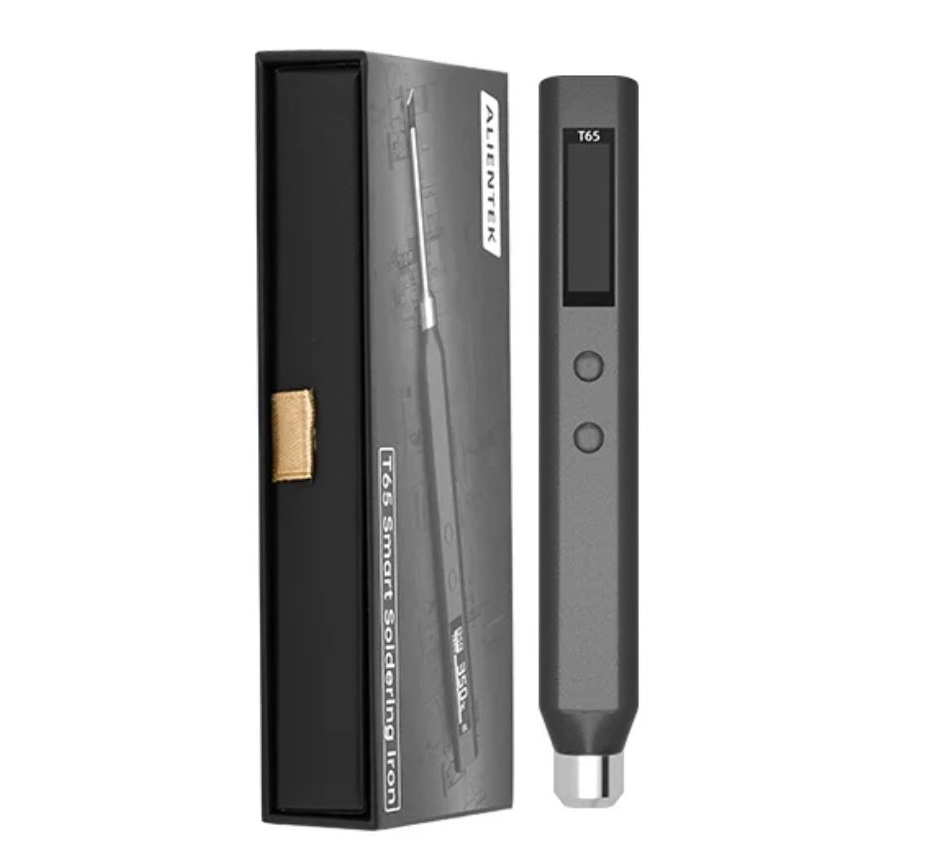 Существует дешевая альтернатива устройству TS101 — китайский USB-паяльник ALIENTEK T65. Это небольшая модель с экраном, кнопками для регулировки температуры и возможностью работать от портативного зарядного устройства. Паяльник ALIENTEK T65. — это простой вариант, который подойдет для мелких задач. Форма корпуса напоминает старый TS100, но с более тонким жалом и возможностью подключения через USB-C интерфейс. В комплекте идут подставка и различные сменные насадки. Поддерживает протоколы PD.