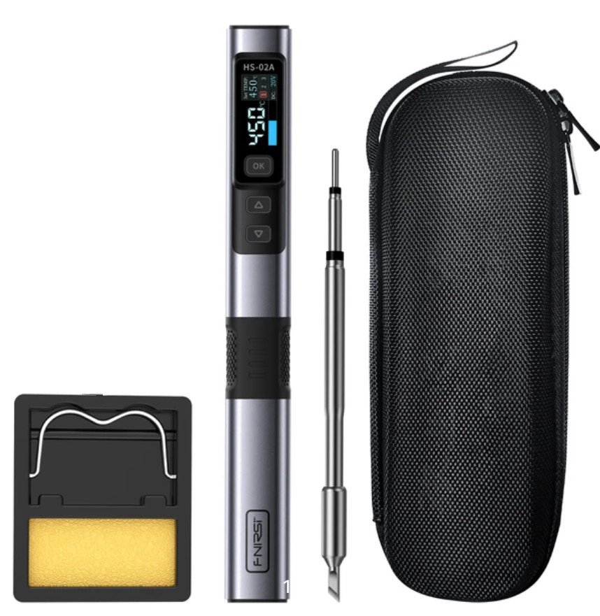 Относительно недавно FNIRSI представили свое новое поколение портативных паяльных устройств с поддержкой технологии Power Delivery. Речь идет про паяльник FNIRSI HS-02 с выходной мощностью до 100 Вт. Предусмотрен OLED дисплей, мощность регулируется. Отмечу, что можно выбрать лот с удобной подставкой в комплекте, а также с дополнительными насадками-жалами.