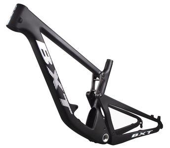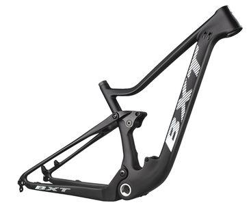 Модель MTB рамы от BXT под бустовые колеса 29". Трендовый дизайн с мощным кареточным узлом и легкими задними перьями, современный прочный карбон T1000 (нагрузка на раму до 250 кг), внутренняя проводка. Ход задней подвески 100 мм, масса рамы 2150 г.