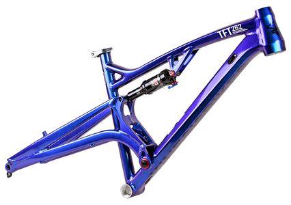 Открывает подборку алюминиевая двухподвесная рама от Kinesis в насыщенном темно-синем цвете. Модель TFT262 предназначена для сборки велосипеда с колесами 27.5". Масса рамы 3,2 кг.