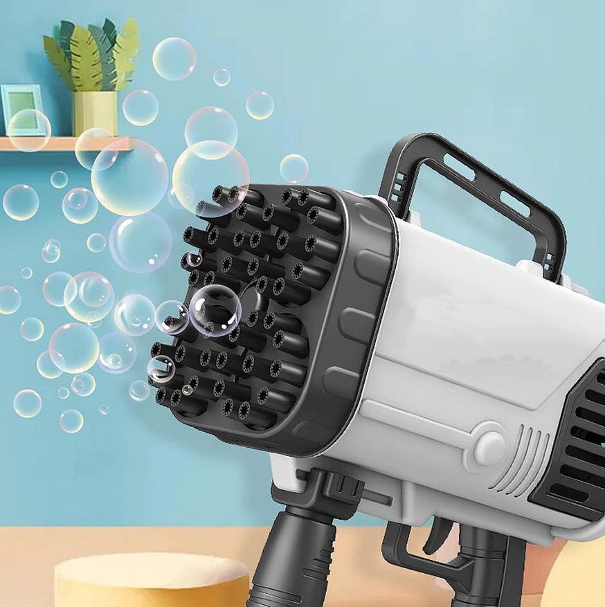Пожалуй, самая крутая и мощная штука, которая выдает огромное количество мыльных пузырей в единицу времени. Девайс оснащен 64 соплами. Можно использовать в помещении или на открытом воздухе. Питание от входящего в комплект аккумулятора. Также в комплекте мыльный концентрат пузырей. Много цветов корпуса на выбор.