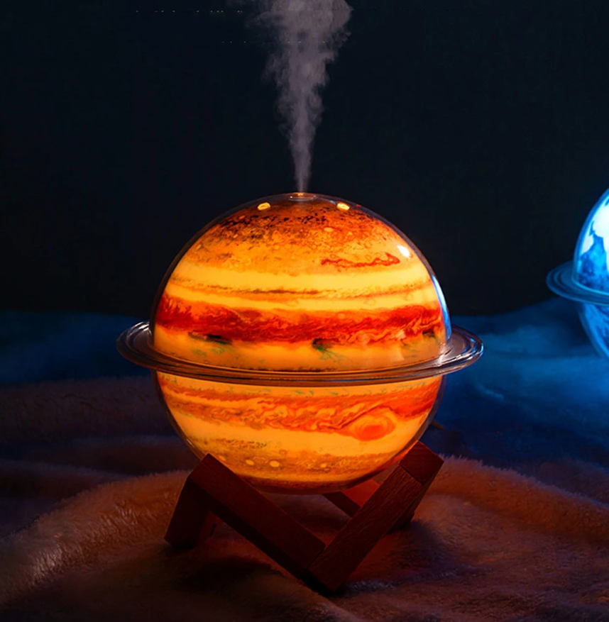 Hom Planet Air Humidifier продолжает тему декоративных увлажнителей, но после Rain Cloud выглядит заметно проще и практичнее. Здесь нет имитации дождя или звукового фона, все сосредоточено на классическом сочетании тумана, мягкого света и компактной формы. Визуально устройство напоминает небольшой купол с рассеянной подсветкой, которая плавно меняет оттенки, всего семь цветов. По характеристикам он ближе к «Титанику», чем к Rain Cloud. Резервуар 330 мл, расход влаги до 50 мл/ч, это больше, чем у обоих предыдущих, поэтому воздух увлажняется быстрее. Работает прибор в двух режимах: постоянном (около 4 часов) и прерывистом (до 8 часов). Питание подается по USB 5 В, мощность 2,2 Вт, а значит, можно подключать к компьютеру, адаптеру или даже павербанку. Rain Cloud создает атмосферу — звук, капли, мягкий свет. Hom Planet Air Humidifier действует скромнее, но при этом универсальнее: он не требует адаптера 24 В, не занимает много места и подходит для повседневного использования. Его можно поставить в спальне, на прикроватной тумбочке или в детской, он не отвлекает, но добавляет немного живости и уюта.