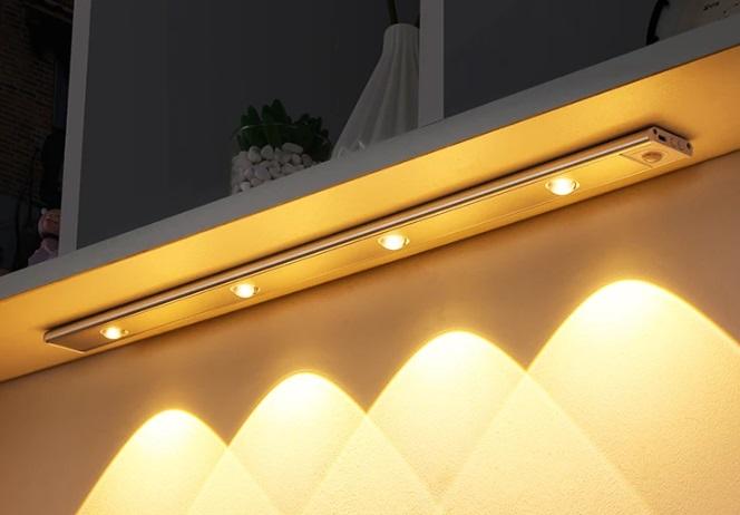 Датчик движения надёжно срабатывает на расстоянии 3-4 метра. Питание обеспечивает встроенный аккумулятор ёмкость которого зависит от длины светильника. Аккумулятор заряжается через современный разъём Type-C. Для монтажа в комплекте предусмотрена магнитная самоклеящаяся лента.