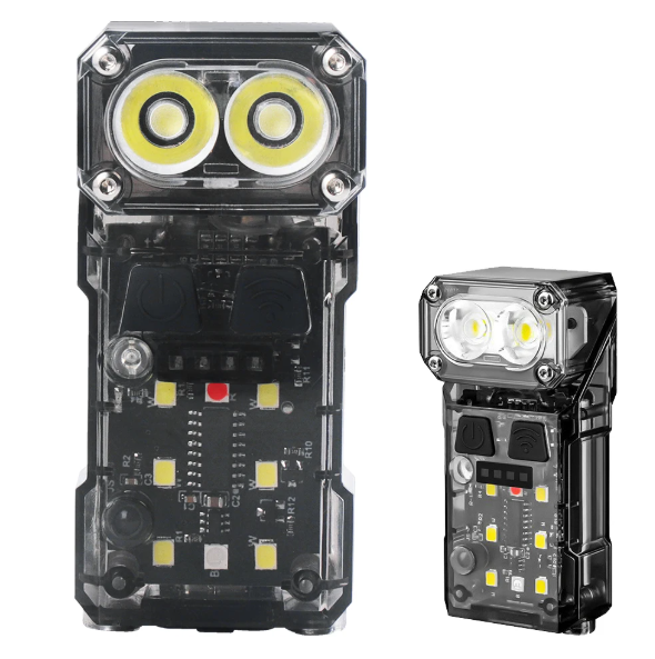 Сверхлёгкий и очень функциональный, этот фонарик предлагает не только основной свет с несколькими уровнями яркости, но и многофункциональный боковой свет. Он оснащён дополнительным боковым светодиодом с высоким индексом цветопередачи (CRI), а также ультрафиолетовым светом. Это делает его идеальным инструментом для самых разных задач — от детального осмотра предметов до проверки документов.