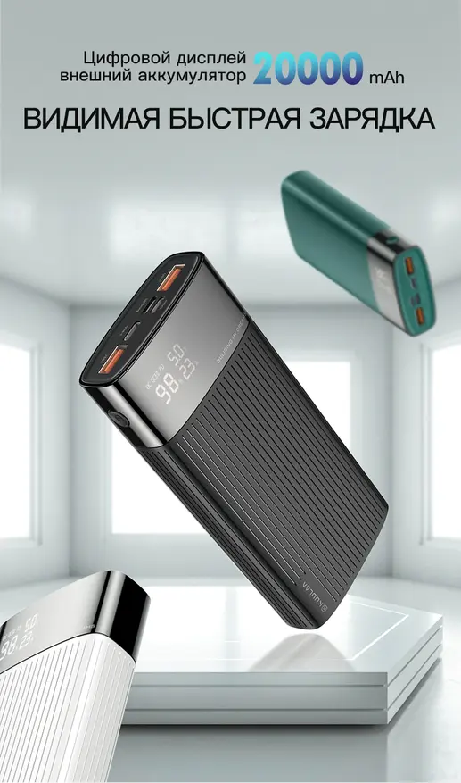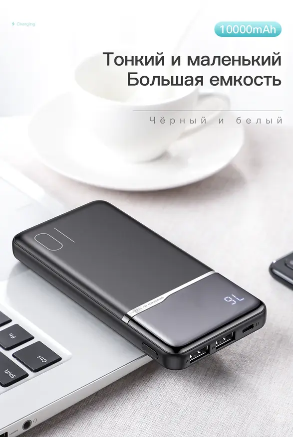 Данный павербанк, судя по количеству заказов, пользуется большим спросом. Он имеет внешность стильного Сяоми, но при этом отличается наличием дисплея, который всегда укажет количество оставшегося заряда. Есть TypeC и microUSB интерфейсы для зарядки павербанка, а также ёмкость в 10000мАч и мощность 18Вт