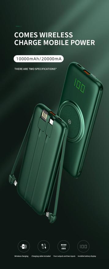 Павербанк со встроенными кабелями и беспроводной зарядкой PINZHENG