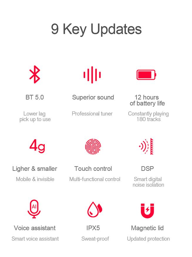 - Время работы на одном заряде наушников: до 3.5ч, кейс обеспечивает зарядку наушников на 12 часов