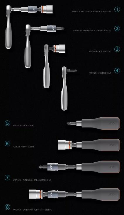 В комплекте биты и торцовочные головки, а также удлинитель и две рукоятки: для головок и бит, практически, на все случаи жизни.
