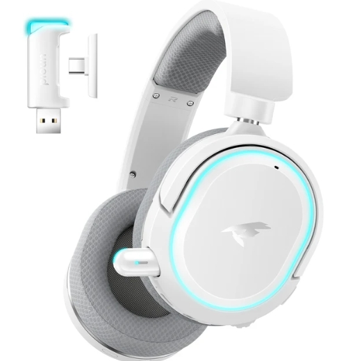 Начнем с интересных моделей для геймеров и тех, кто ценит универсальность подключения. Эти наушники поддерживают сразу три режима: Bluetooth, 2.4 ГГц через компактный донгл (спрятанный в корпусе) и проводное подключение.