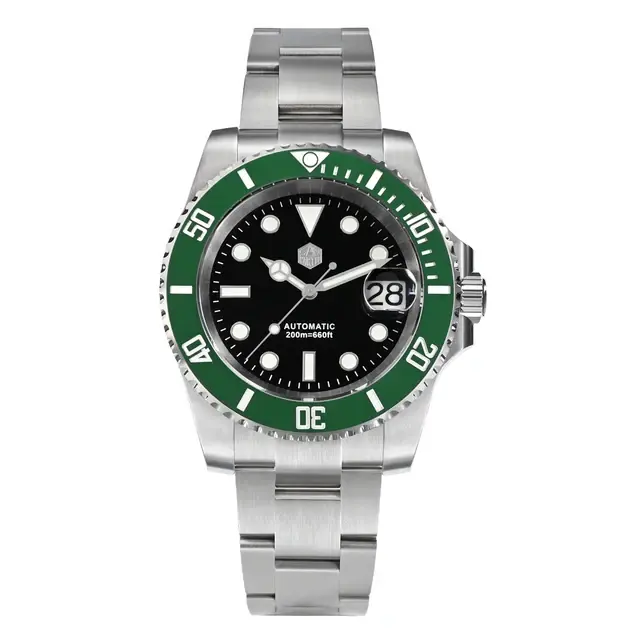 San Martin — одни из тех часов, которые клепают крепкие, достойные бюджетники по адекватной цене, но при этом не самостоятельные ни в плане калибров, ни в смысле дизайна. Свои «Rolex» они пакуют в сталь 316, герметизирую корпус на 200 метров, закрывают сапфировым стеклом, а внутрь вкладывают механизмы Seiko NH35.