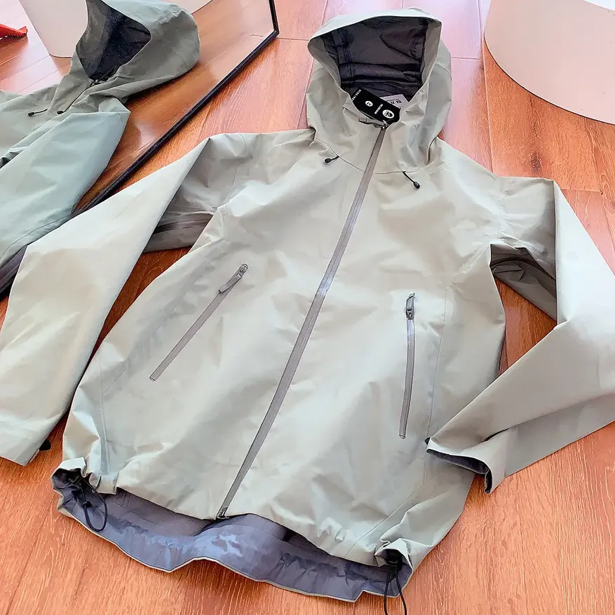 Куртка выполнена из нейлона и предназначена для использования в условиях ветра и осадков. Модель оснащена капюшоном и застёжкой-молнией. Материал и конструкция рассчитаны на водоотталкивающие и ветрозащитные свойства, а также базовую воздухопроницаемость. Подкладка также выполнена из нейлона. Куртка применяется для активностей на открытом воздухе, включая кемпинг, рыбалку и альпинизм. Вес изделия составляет около 650 г.