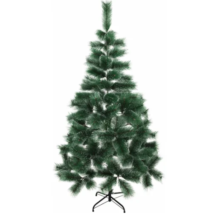 А эта ёлка — одна из самых популярных вариантов и Ашана. Тут высота также 180 сантиметров, ножка и ствол из металла, хвоя из ПВХ. Такую ёлку хвалят за то, что она очень пушистая, а также очень легка в сборке. Правда многие отмечают, что ее лучше сильно не тревожить после сборки, так как она имеет тенденцию к опаданию хвои.