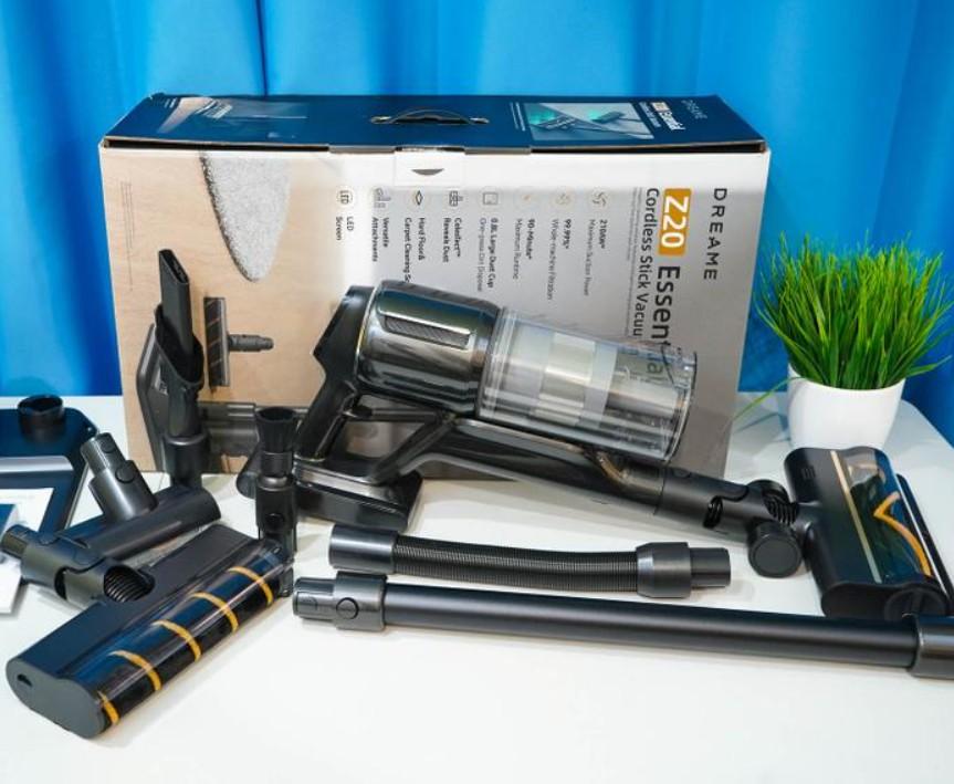 Одна из мощных моделей в линейке производителя Dreame — это пылесос Z20. Расширенная комплектация Essential предлагает сразу пять разных насадок (три электроприводных различного назначения, две узких, а также гибкий шланг, облегчающий локальную уборку) и напольная подставка с функцией органайзера. Стоит отметить, что данная модель доступна и в версии Dreame Z20 Station, то есть с вертикальной станцией для самоочистки в комплекте. Ссылка на подробный обзор.