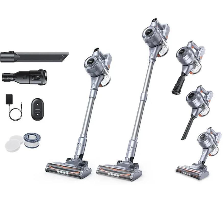 Интересный вариант с мощным двигателем и интересным дизайном предлагает бренд Redkey. Речь идет про беспроводной пылесос Redkey F10 Pro с технологией FLEX. Благодаря сгибаемой трубке пылесос позволяет легко убирать под низкой мебелью и в других труднодоступных местах. А подсветка на основной и щелевой насадках помогает сразу видеть, где ещё осталось пыль и добиться идеальной чистоты. Стоит отметить сразу два HEPA фильтра, а также съемный аккумулятор, который можно заряжать как отдельно, так и вместе с пылесосом. Ссылка на подробный обзор.