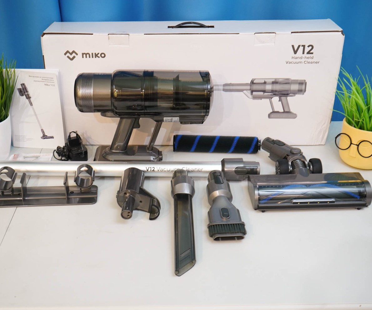 Обновленная модель мощного беспроводного пылесоса для ежедневной уборки — это Miko V12 с высоким значением силы всасывания — до 50 000 Па (в зависимости от выбранного режима). Пылесос комплектуется настенным креплением с держателями для насадок. В конструкции предусмотрен быстрый сброс собранного мусора без контакта с пылью. Отмечу съемный аккумулятор, подсветку рабочей зоны и цветной дисплей. Из необычного — светящаяся щелевая насадка с перфорацией. Ссылка на подробный обзор.