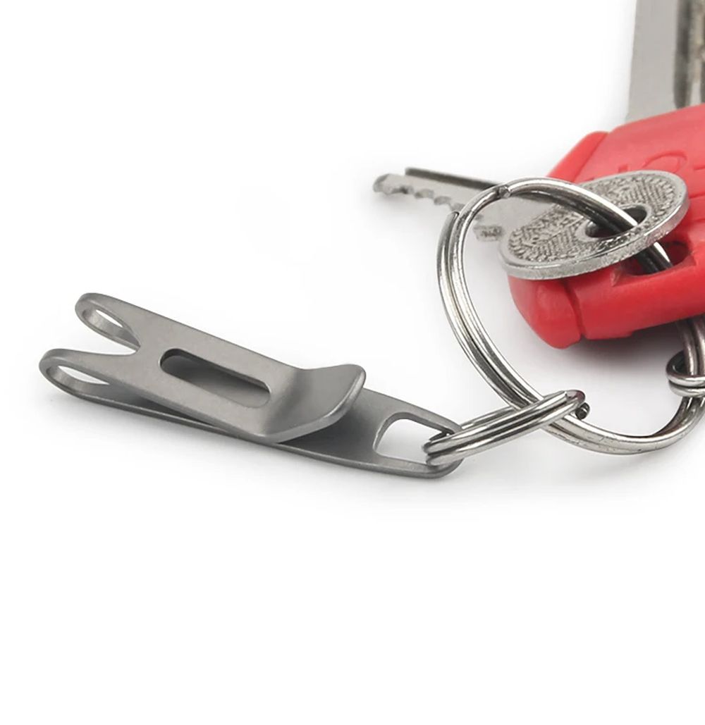 Изделия из титанового сплава это не только модно, но и прочно. Данный аксессуар представляет из себя подвес, который является не только брелком, но и позволяет закрепить ключи, например, внутри портфеля или сумки, чтобы они не терялись. Выполнен в виде изогнутой клипсы. Весит всего 3.2 грамма. Размер: 37*8 мм. Как и любая вещь из титана, стоит несколько дороже аналогичных предметов из стали или алюминия.