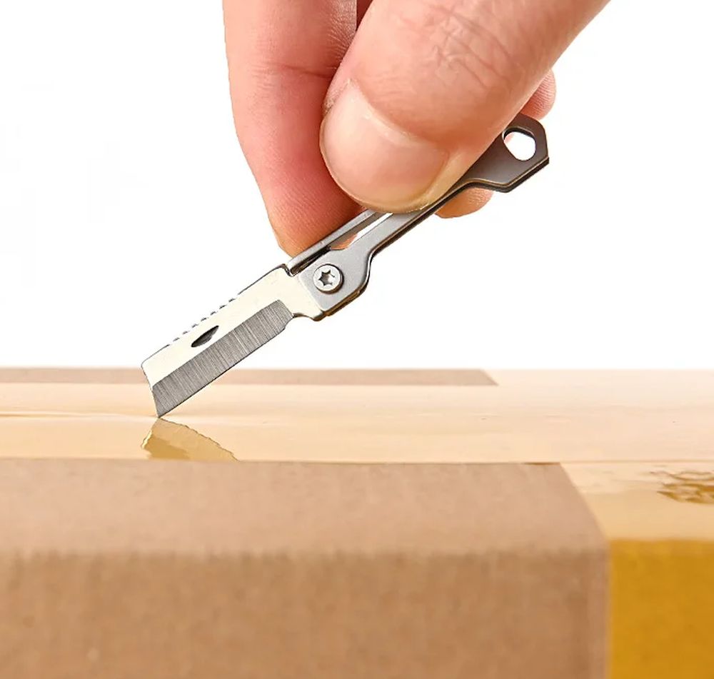 Если часто приходится вскрывать посылки или письма, то не обойтись без компактного режущего предмета. Например, подобного складного брелка с миниатюрным лезвием. Важно, что оно имеет скошенную форму спереди и достаточно безопасно. На выбор два варианта цвета. Размер в разложенном виде: 65мм. Длина лезвия 22 мм.