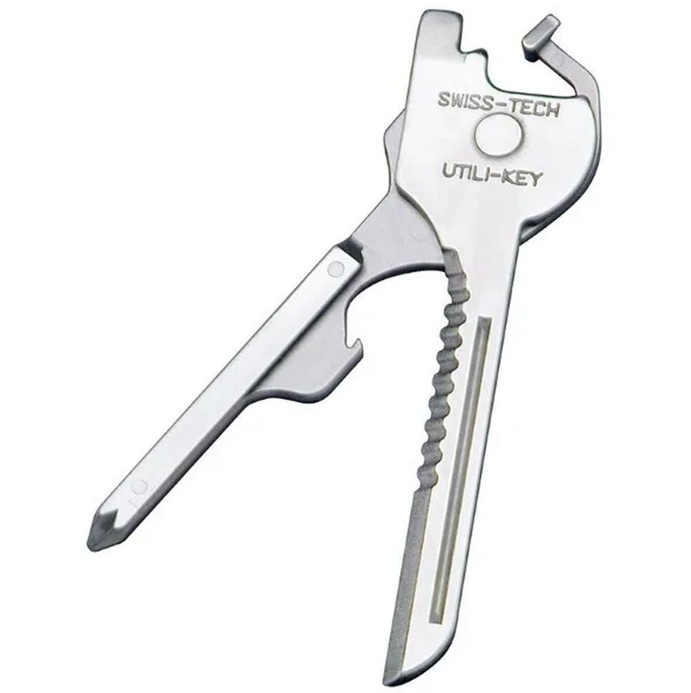 Интересный вариант брелока выполненного в виде ключа, но имеющего несколько полезных функций. Состоит из двух раскладывающихся частей. В составе есть: крестовая и плоская отвертки, а также отвертка для очков, мини-пилка, открывашка, небольшое лезвие (например, для открытия конвертов или посылок). Может раскладываться на 180 градусов. Длина 7см, вес 11 грамм. Выполнен из нержавеющей стали.