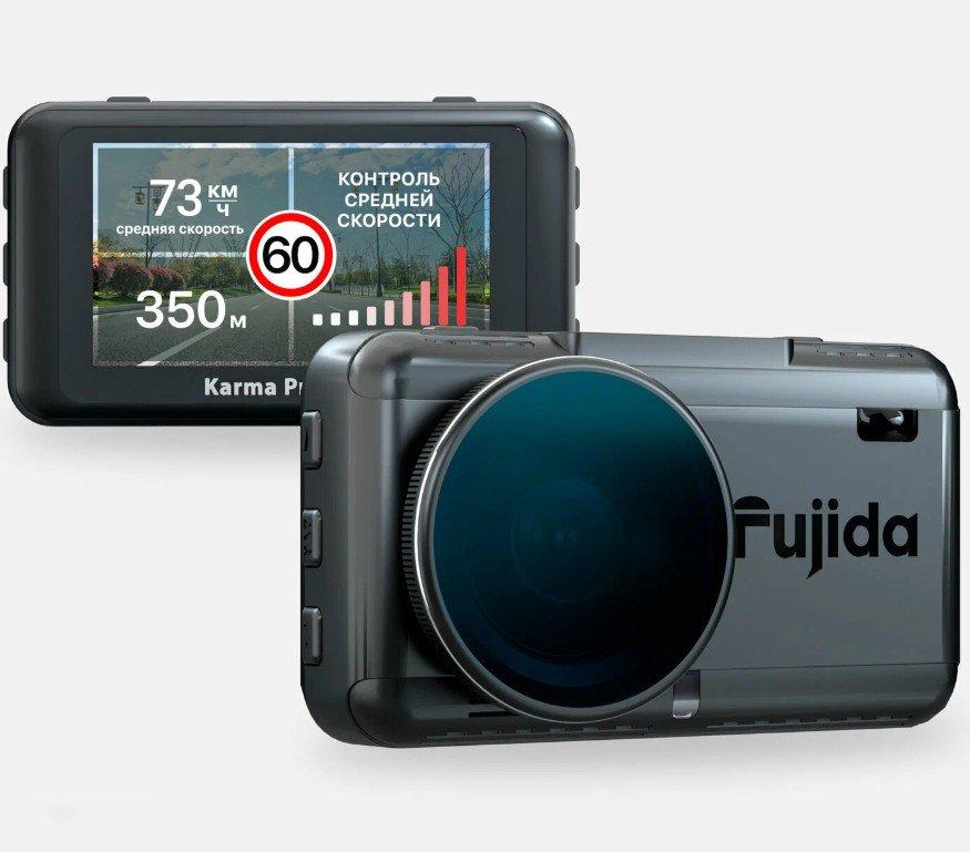 В ассортименте популярного бренда Fujida также имеется представитель комбинированных устройств с GPS и встроенным детектором камер и радаров. В данном случае речь идет про модель Fujida Karma Pro Max, которая ярко выделяется своим крупным объективом камеры, на который установлен специальный антибликовый фильтр. Данный видеорегистратор также оснащается и WiFi модулем для беспроводного доступа с помощью смартфона.