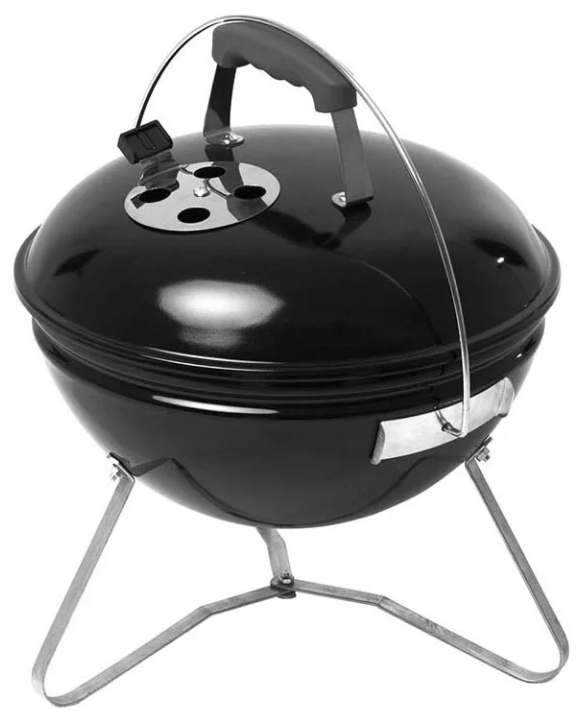 Этот вариант также хорош для каждого, кто не хочет иметь определенное место для приготовления продуктов. Он повторяет преимущества предыдущего, но имеет более компактные размеры. Из-за низкой цены в нем нет термометра и золоприемника, но зато он легкий и компактный.