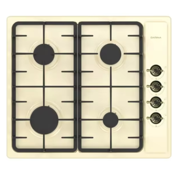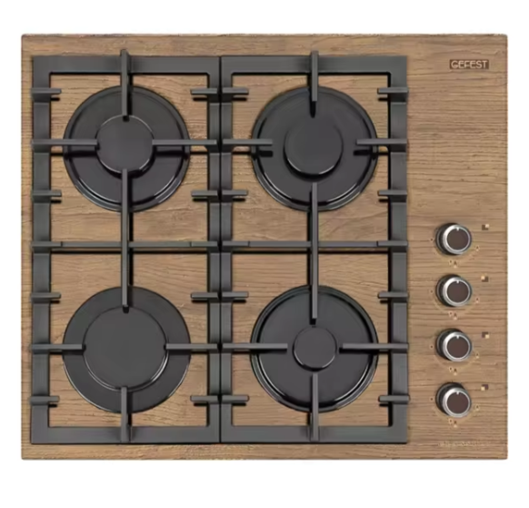 Газовая варочная панель выполнена в стиле «ретро» и оснащена поворотными переключателями. Имеется функция электроподжига для удобства использования. Устройство предназначено для встраивания в нишу размером 5х55,5х47,5 см (высота, ширина, глубина).