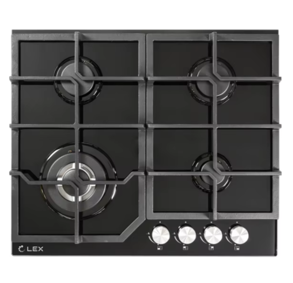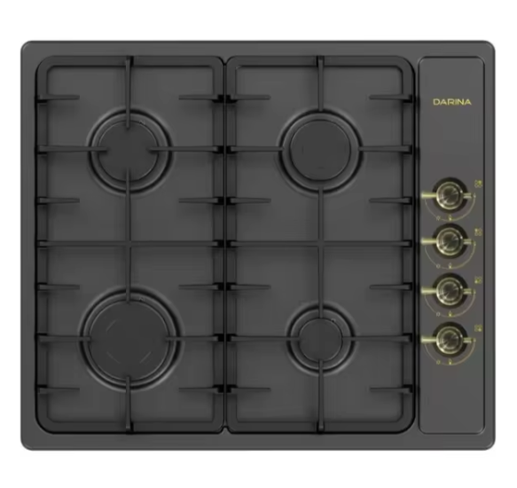 Газовая варочная панель оснащена четырьмя конфорками и выполнена в черном цвете. Рабочая поверхность изготовлена из эмали, а решетки — из чугуна. Габариты панели: ширина 58,5 см, глубина 50,5 см. Система газ-контроля отсутствует.