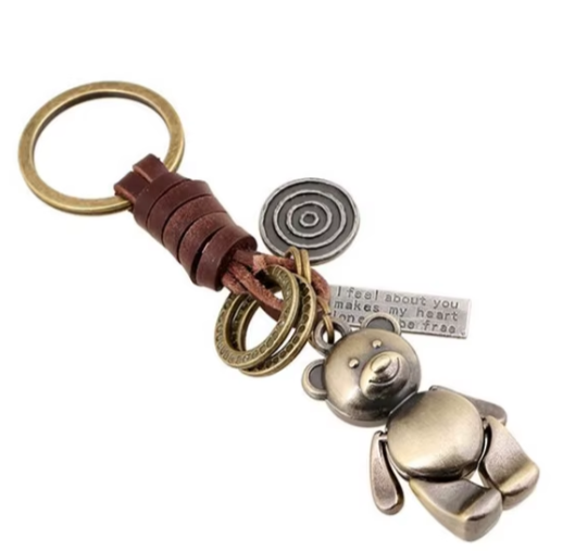Брелок Zalzyywb из кожи в виде медведя и кролика выполнен из воловьей кожи и медного сплава. Он оснащён железным кольцом для ключей. Общая длина брелока, включая кольцо, составляет около 12 см. Изделие сочетает в себе стильный дизайн в виде животных и высококачественные материалы.