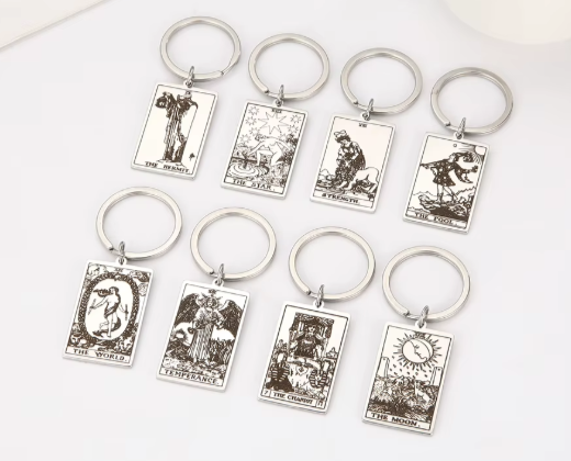 Брелок Skyrim Аркан Таро изготовлен из высококачественной нержавеющей стали. Брелок имеет квадратную форму, а на его поверхности выгравирована картинка. Брелок доступен в 44 цветах.