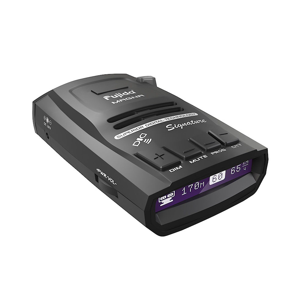 Fujida Magna оснащен сигнатурным фильтром с быстрым реагированием на ложные срабатывания на различные автомобильные датчики. В устройстве предусмотрено несколько режимов работы, которые самостоятельно подбирают необходимый стиль работы с определенными скоростями и детектированием радарных комплексов. Высокая скорость работы за счет современного процессора позволяет увеличивать дальность обнаружения. Вся необходимая информация выводится на OLED экран, в том числе скорость движения, обнаруженные комплексы видеофиксации. Принимающая линза может работать на 360 градусов, что позволит определять устройства, работающие в «спину». Обновление баз данных производится на компьютере при подключении через USB разъем.