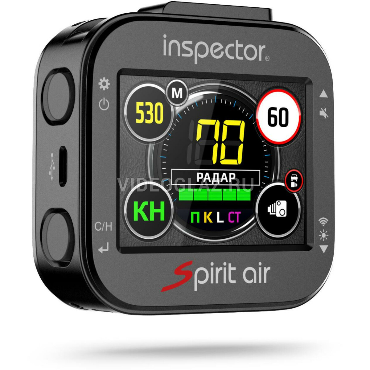 Этот сигнатурный РД выполнен в форм-факторе видеорегистратора и имеет большой цветной экран диагональю 2.4 дюйма, на который выводится необходимая информация. На цветном экране значительно проще воспринимается выводимая информация, если сравнивать с OLED моделями. В основе INSPECTOR Spirit Air заложена современная патч-антенна с плоским рупором. Устройство может обнаружить до 15 известных радарных комплексов, стоящих на вооружении сотрудников ГАИ. Для отсеивания ложных срабатываний используется сигнатурная технология, фильтрующая К-диапазон, а также отсеивающая различные вспомогательные технологии автомобилей. Кроме того, на экран может выводиться необходимая информация по дорожным знакам или камерам, которая заложена в GPS базу данных.