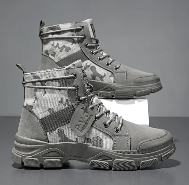 Подошва изготовлена из резины и обладает средней жёсткостью, поэтому подходит для городских тротуаров и лёгкого бездорожья. Стелька из EVA создаёт амортизацию, что особенно важно при активной ходьбе по асфальту или камням. Высота ботинка до середины голени добавляет устойчивости и снижает нагрузку на суставы.