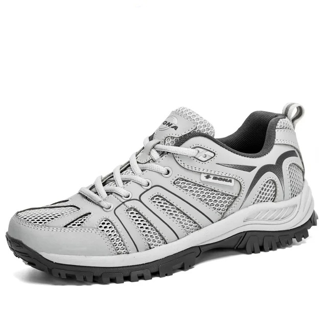 Используемые материалы: верх представлен двумя слоями сетчатой ткани с разным размером ячеек, прочным кожаным остовом, выстланным текстилем на заднике, а подошва имеет в составе резину и ЭВА.