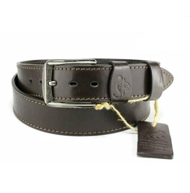 Ремень есть в черном и кофейном цвете, а длину можно приобрести в диапазоне от 105 см до 130 см.