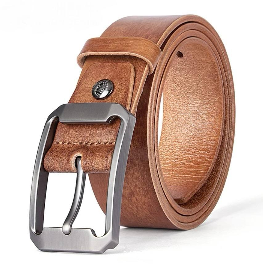 Ремень сделан из спилока (разновидность натуральной кожи) и имеет металлическую фурнитуру с габаритами 5,2х7 см (ШхД). Ширина самого пояса составляет 3,8 см. Пряжка устойчива к появлению царапин. Изделие в целом весьма долговечно в носке.