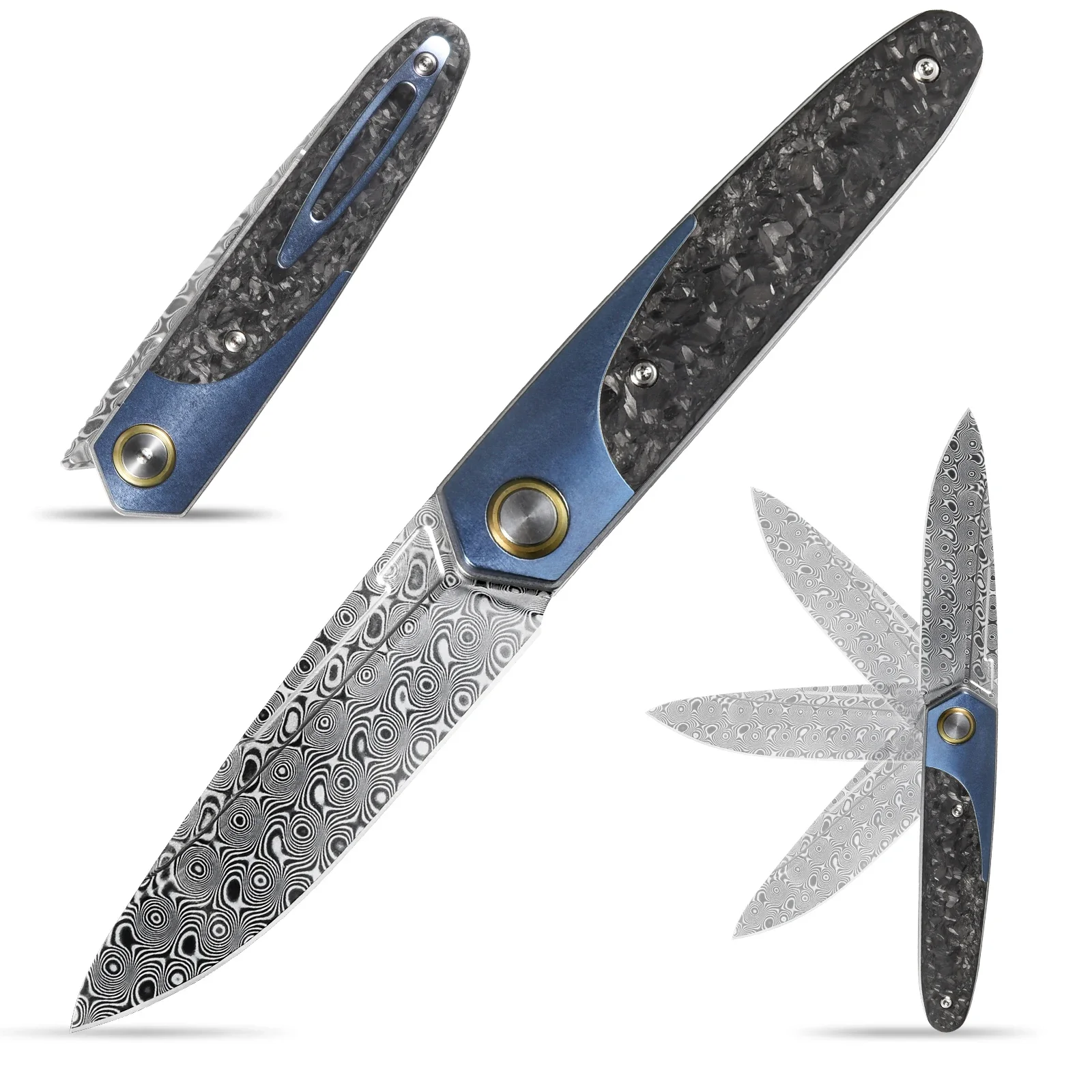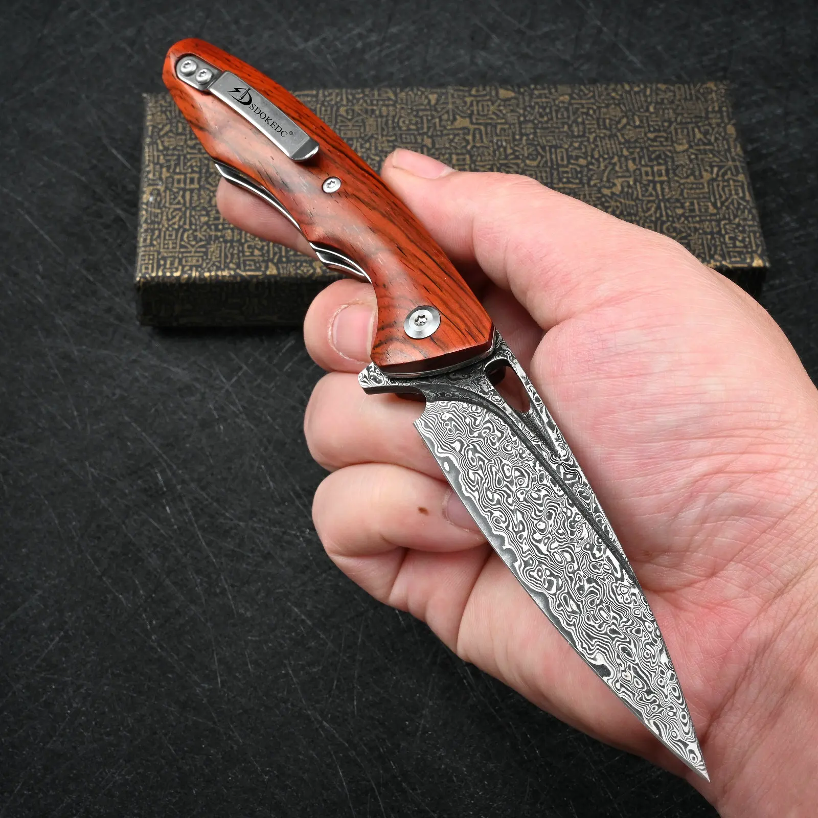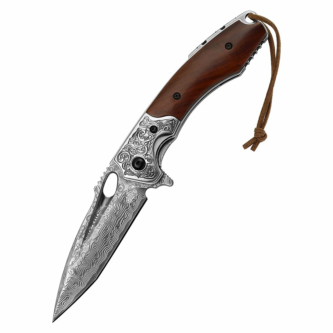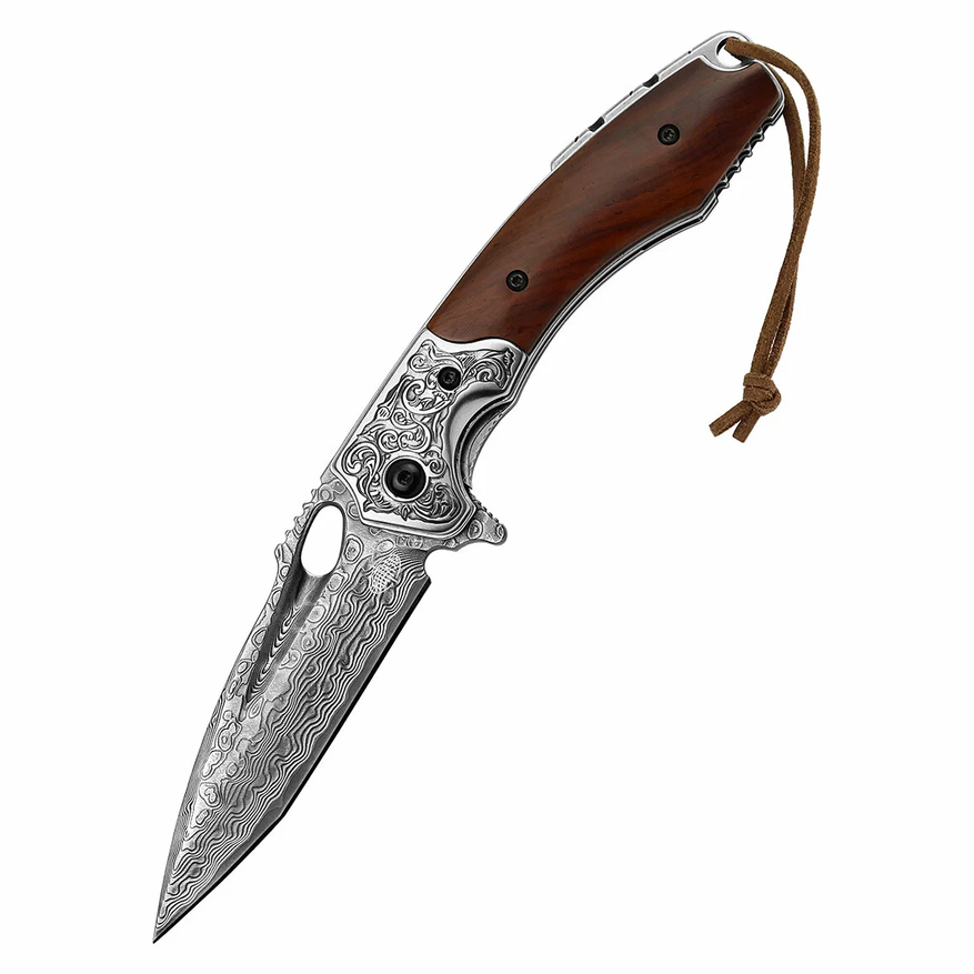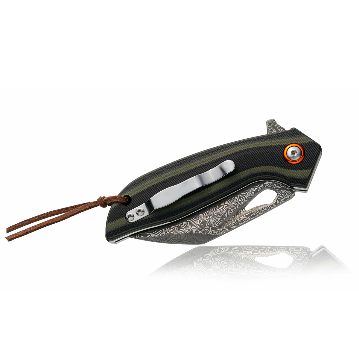 Бюджетная (по меркам класса) модель с клинком из дамасской стали предлагает достойное качество по доступной цене. Конструкция ориентирована на практичность — простой замковый механизм, удобная рукоять, металлическая клипса и универсальная геометрия клинка подходят для ежедневного использования.
