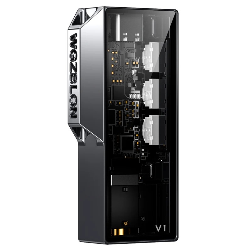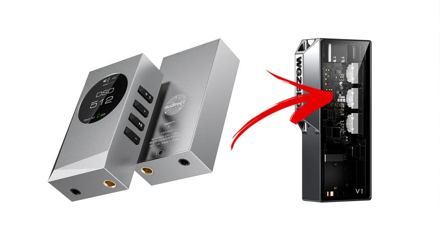 Такой же гигант из мира звука, как DUNU, похоже, не сильно заботится о дизайне, зато внутри установил два флагманских чипа Cirrus Logic CS43198, нарезал брутальных граней в стиле Tesla Cybertruck, снабдил это всё двумя выходами с мощностью до 150 мВт на балансе, режимом поддержки игровых консолей, весом в 20 грамм, регулировкой уровня сигнала непосредственно с корпуса и небольшим светодиодом для индикации качества текущего аудиопотока.