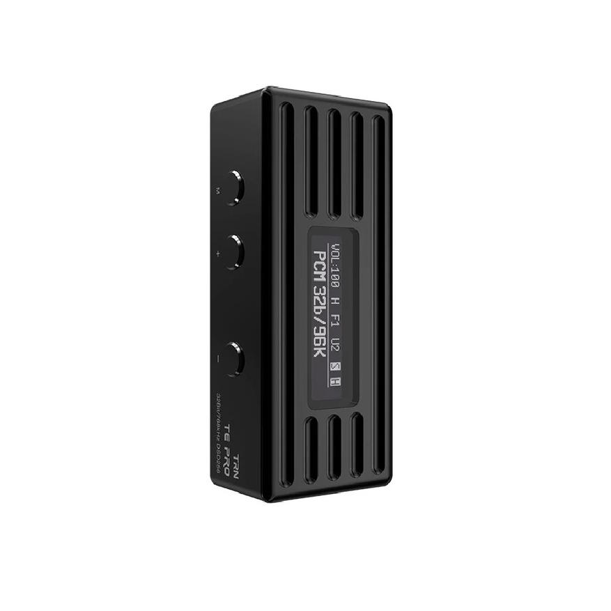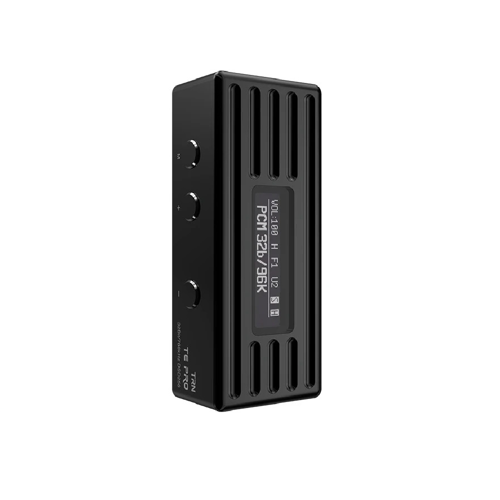 Следующим номером у нас тоже новинка — TRN TE Pro. Аппарат может похвастаться наличием встроенного дисплея, окошком на микросхемы, двумя выходами на наушники и поддержкой того самого SPDIF, о котором я говорил вначале подборки. Это уже далеко не рядовой набор возможностей, тем более, что тут можно выбрать уровень гейна, версию UAC для игровых приставок, один из цифровых фильтров, подстроить баланс каналов и аппаратно устранить щелчки, если они почему-то присутствуют. Список поддерживаемых разрешений тоже расширили — это 32 бита 768 кГц для PCM и DSD256. По мощности же имеем 240 и 125 мВт на 32 Ома нагрузки.