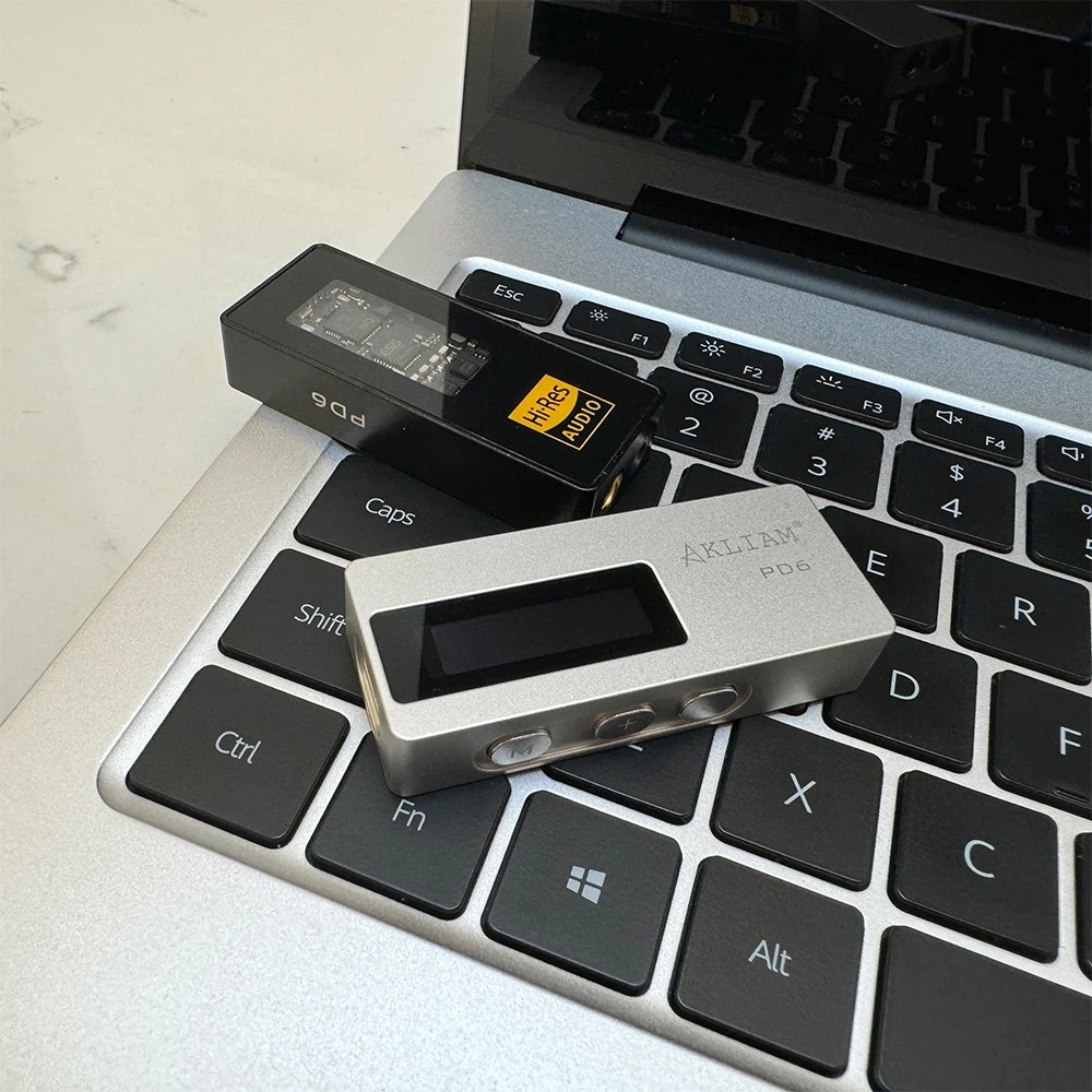 Бренд AkLIAM, уверен, многие помнят за его просто феноменальный дебют с PD5. Теперь же у меня в руках его технический наследник — AkLIAM PD6. С ним нам тоже дают бесплатный довольно хороший чехол, на корпусе есть два выхода на наушники и три кнопки управления, окошко с видом на начинку, внимание, логотип Hi-Res Audio сертификации и небольшой, но весьма информативный дисплей. Где можно выбрать уровень гейна, поменять цифровой фильтр, аппаратно избавиться от щелчков и переключить 3.5 мм разъем на цифровой SPDIF. То есть тоже расширенный набор возможностей. Как, собственно, и по разрешению, где можно рассчитывать на 32 бита 768 кГц для PCM и DSD512. Завяленная мощность составляет 240 мВт на 32 Ома нагрузки.