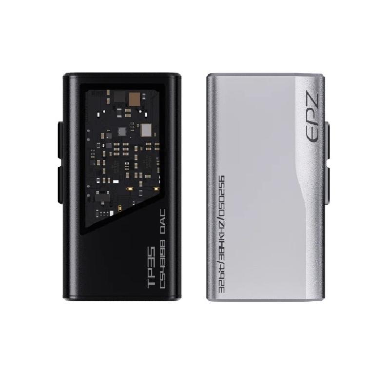 Корпус EPZ TP35 тоже сделан из металла, с окошком на плату, стильными скосами, двумя аналоговыми выходами на наушники и кнопками для управления своей собственной внутренней громкостью. По разрешению здесь те же 32 бита 384 кГц для PCM и DSD256, но можно переключить уровень усиления и версию UAC, а также выбрать один из встроенных цифровых фильтров. В плане мощности же тут 150 и 65 мВт на 32 Ома нагрузки, в зависимости от разъема.