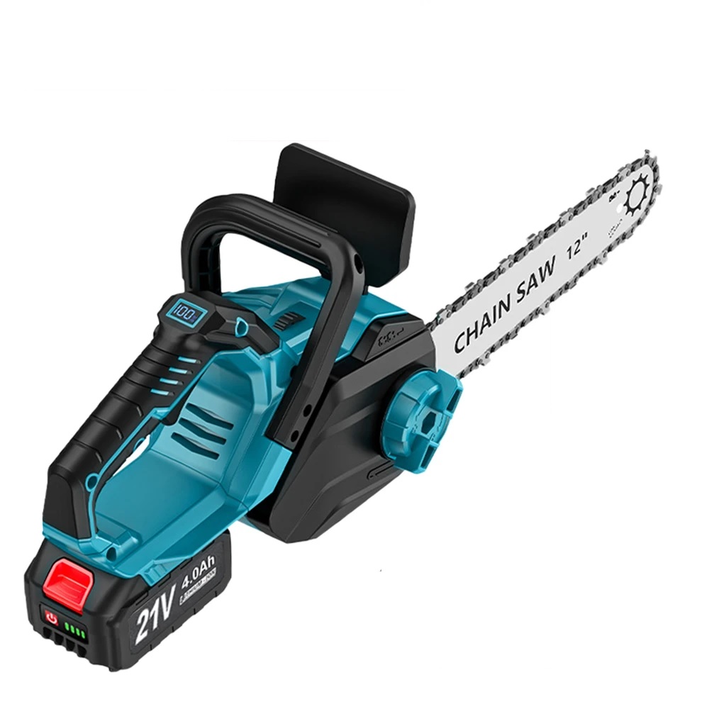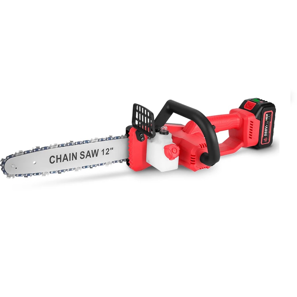 Эта 12-дюймовая цепная пила предназначена для широкого спектра задач: обрезание крупных веток, подрезка деревьев и распил досок, а также крупных брусков. Максимальная скорость цепи 14 м/с обеспечивается мощным двигателем на 3000 Вт. В качестве источников питания могут использоваться аккумуляторы 388Vf с напряжением от 18 до 21 В. Для домашних задач это достаточно неплохой вариант, из-за небольших габаритных размеров и высокой мощности.