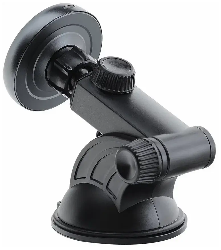 Держатель магнитного типа. Для MagSafe-устройств. Другие гаджеты с беспроводной зарядкой укомплектовываются пластиной из магнита которая входит в комплект. Диагональ подходящих гаджетов 5,4-6,7 дюйма. Магнитное крепление способствует надёжному сцеплению гаджета с держателем. Не требует никаких заморочек — прикрепил телефон и можно ехать. Магнит мощный — телефон с чехлом MagSafe фиксирует крепко.
