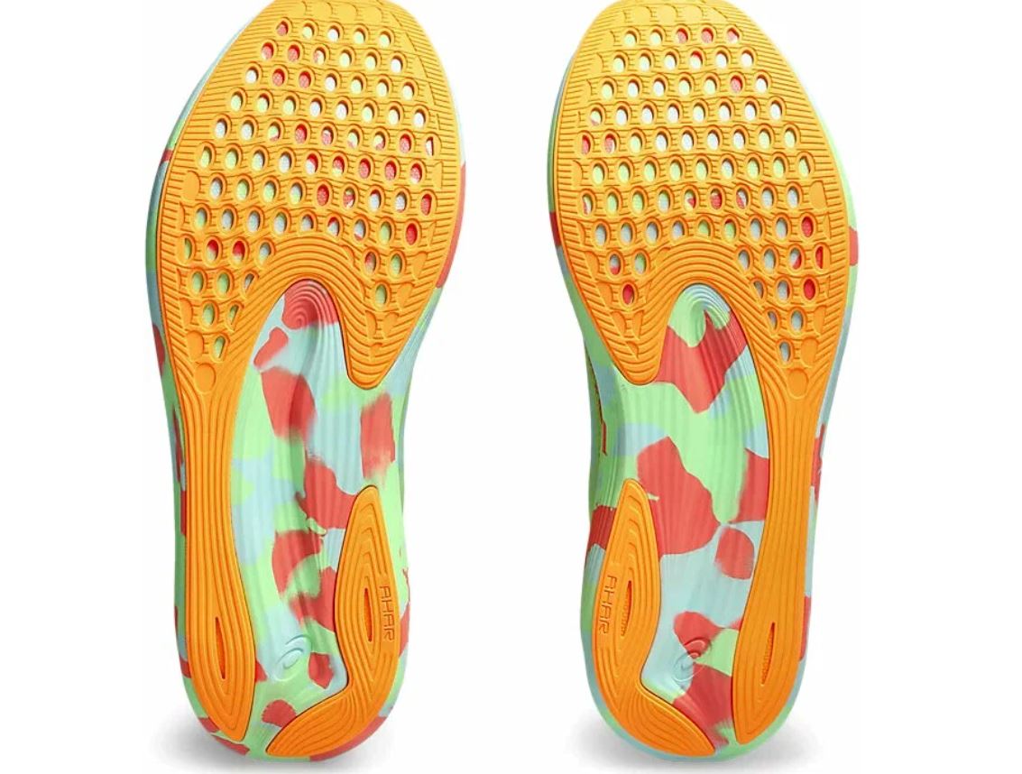 Эта пара сразу привлекает внимание своим выразительным дизайном, вдохновленным картиными пятнами и узорами, напоминающими работы Ван Гога. Но кроме внешнего впечатления, эти кроссовки специально разработаны для бега и триатлона.