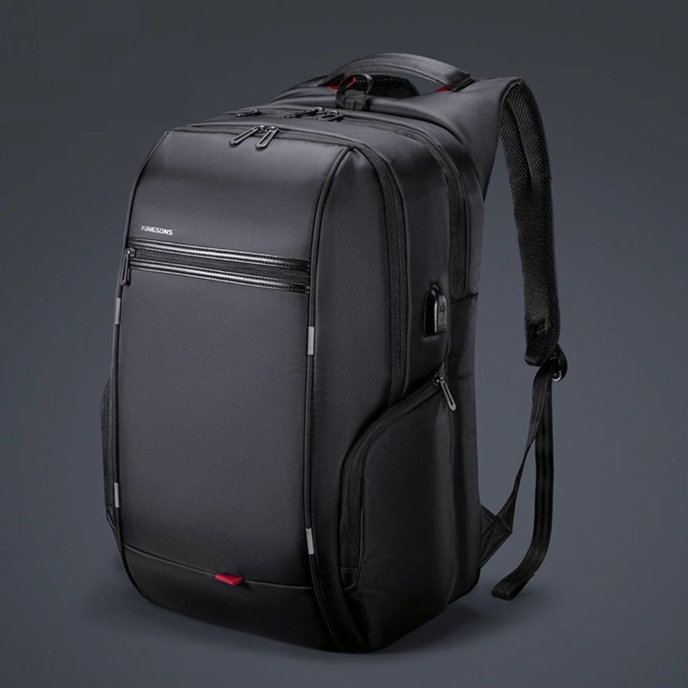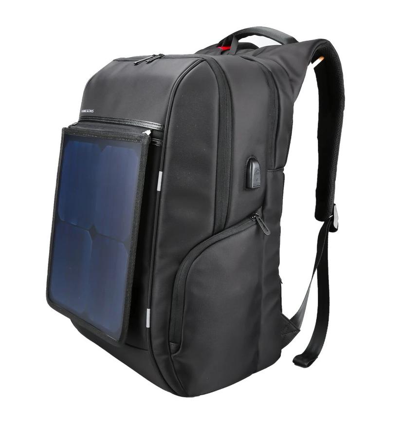 Необычная модель городского рюкзака классической формы от Kingsons оснащенного дополнительной солнечной панелью. Панель находится в специальной прозрачном кармане на лицевой стороне рюкзака и обеспечивает зарядку гаджетов через два USB- разъема прямо в процессе передвижения пользователя. При необходимости панель отстегивается. На странице товара несколько моделей (с солнечной панелью и без) с объемом, подходящим для переноски 13,15.6 или 17-дюймового ноутбука. По отзывам: отличное качество и эффектный внешний вид.