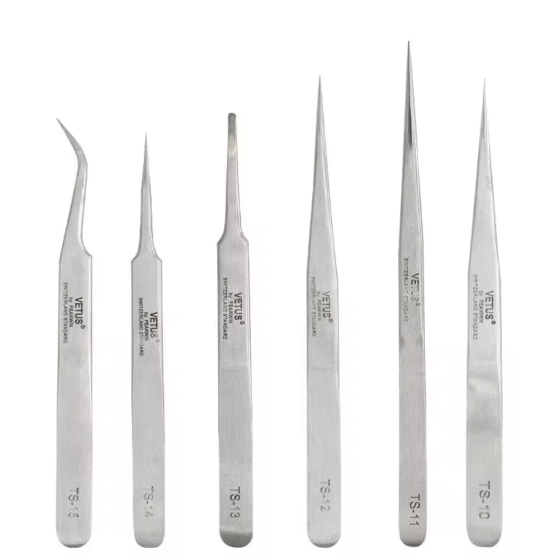 Набор VETUS TS из 6 пинцетов из нержавеющей стали с различными формами и изгибами — интересный выбор для работы с электроникой, сборкой моделей, ремонтом мелких деталей и даже для косметических целей. Каждый пинцет имеет свою форму, что делает набор универсальным для любых задач, требующих точности. Прочные и острые кончики не гнутся при работе, обеспечивая захват. В комплекте предусмотрены защитные колпачки для каждого пинцета, а на упаковке есть наклейка с кодом для проверки подлинности.