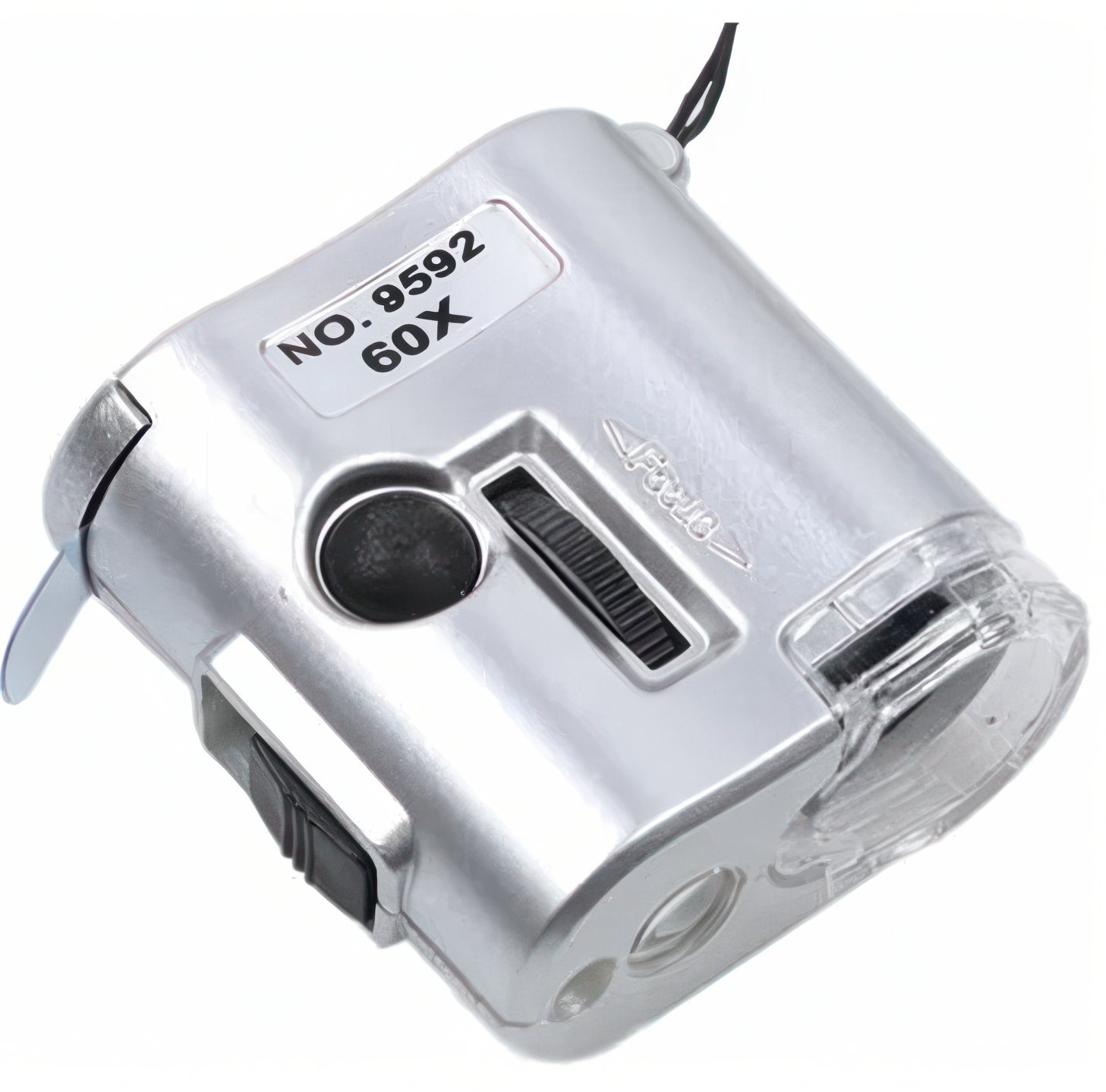Компактный микроскоп с 60-кратным увеличением станет отличным помощником для нумизматов и коллекционеров. Главная особенность модели — наличие двух режимов подсветки: обычного и ультрафиолетового. УФ-свет позволяет проверить защитные элементы на банкнотах, а также изучить люминесцентные метки на редких монетах. Встроенный механизм фокусировки обеспечивает чёткое изображение на любых расстояниях в пределах рабочего диапазона.