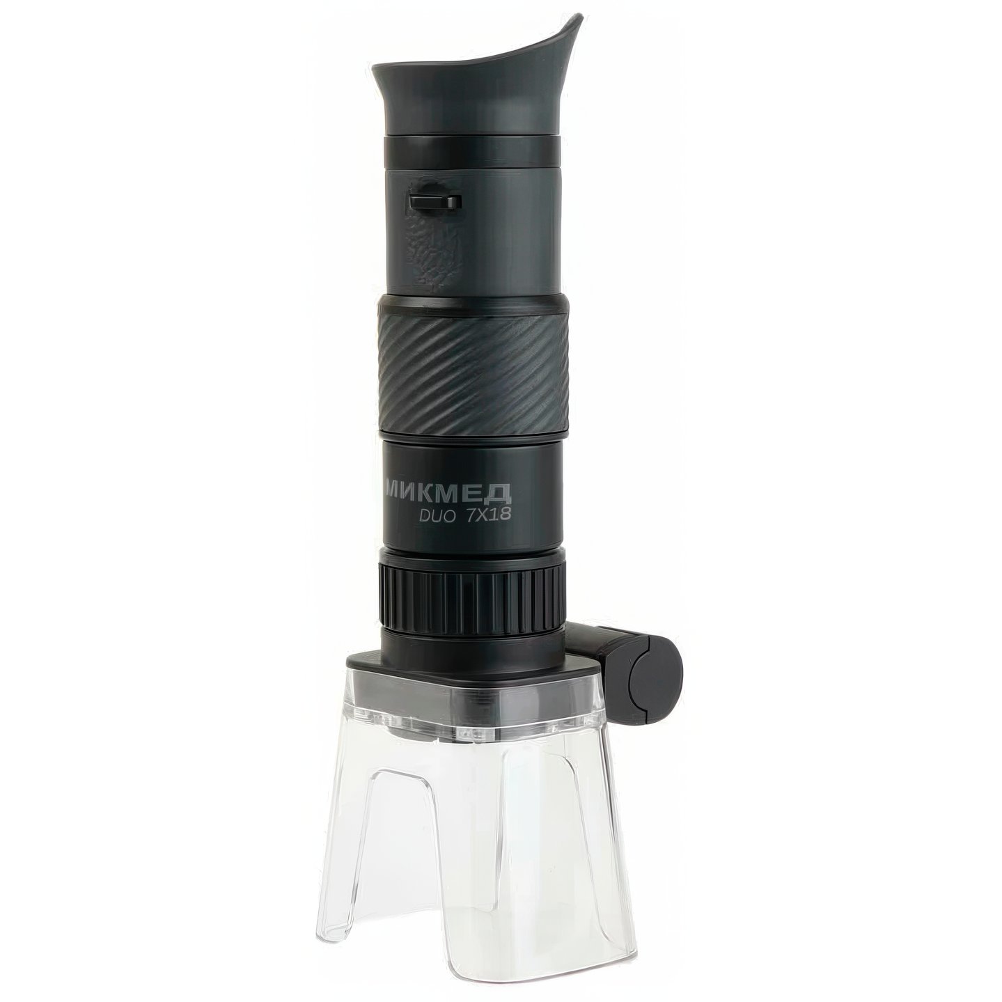 Для предыдущих микроскопов всё же требуются (хотя бы минимальные) знания по обращению с увеличительной техникой, не совсем забытые со времен школьных уроков биологии. Однако, легендарное предприятие ЛОМО создало максимально простой в использовании карманный микроскоп. Три фиксированных режима увеличения — 4, 7 и 25 крат — избавляют пользователя от необходимости производить тонкую настройку. Контрольная пластиковая юбка вокруг объектива обеспечивает идеальное фокусное расстояние при простом прикосновении к исследуемому предмету.