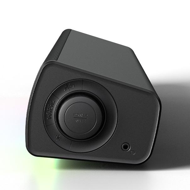 RGB-подсветка предлагает три индивидуально настраиваемых режима, позволяя создавать разную атмосферу в зависимости от настроения. Приподнятая конструкция улучшает распространение звука и предотвращает поглощение низкочастотных компонентов звукового ряда столешницей. Это надёжный вариант для офисного использования и повседневного развлечения, где баланс между компактностью, ценой и функциональностью имеет первостепенное значение.