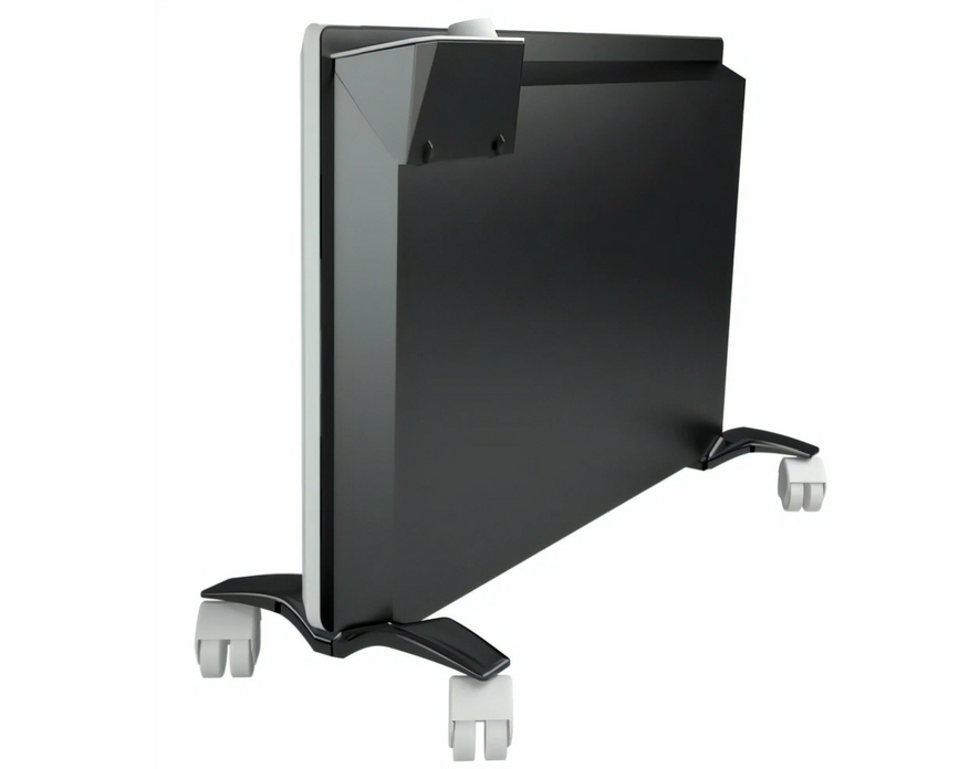 Корпус компактный: 830 x 84 x 400 мм, вес 5 кг, так что переставлять его легко. В комплекте есть ножки с колесиками — поставил на пол и спокойно перекатываешь между комнатами. Можешь держать в спальне, кабинете, на кухне — подходит практически везде, где нужна точечная теплая зона.