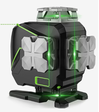 PAOWAFOL 4D выдаёт шестнадцать проекционных лучей — по 2 в продольном и поперечном направлении на 360°, что подойдет для для горизонтальной и вертикальной разметки в пространстве. Погрешность у прибора около +-2мм на 10м, есть функция самовыравнивания в пределах нескольких градусов и режим работы с наклонными плоскостями. Работает он от аккумуляторов или напрямую от сети, лазер зелёный — заметен в помещении и на улице на коротких дистанциях. В комплект входят аккумуляторы, зарядка и базовые аксессуары для крепления и работы.